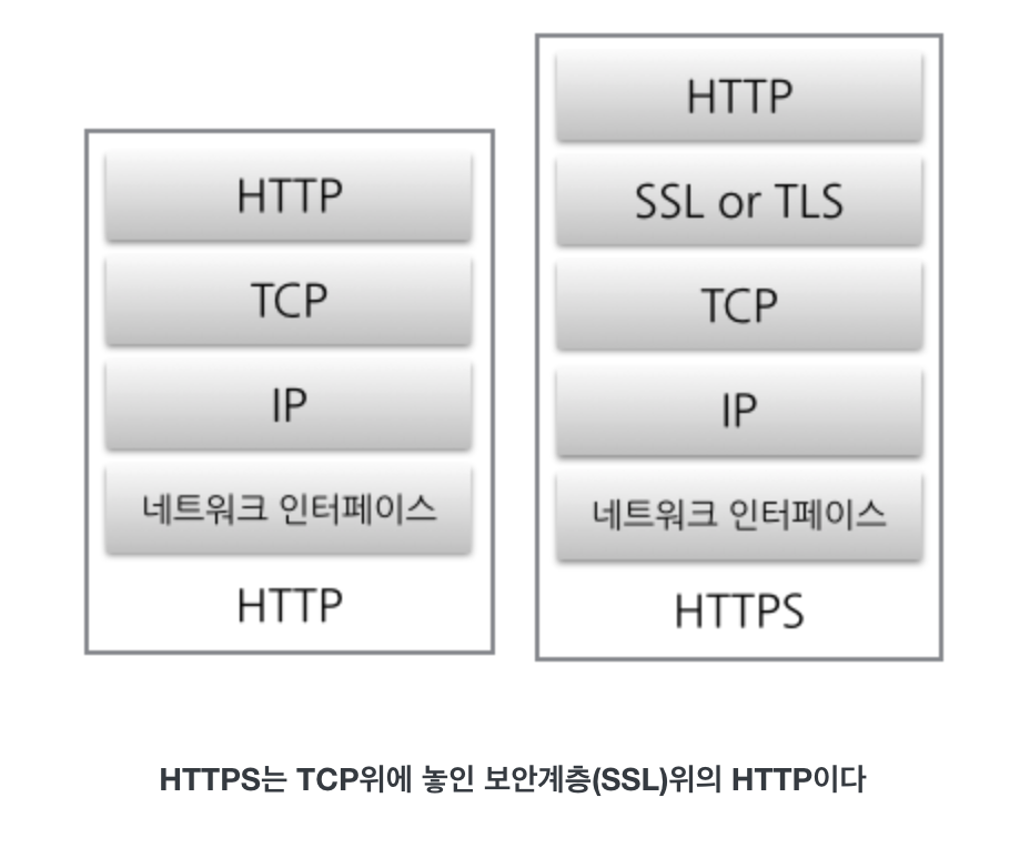 - HTTP와 HTTPS는 애플리케이션 계층 프로토콜로, TCP/IP 위에서 동작합니다.