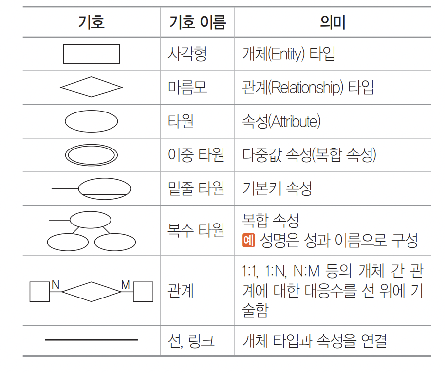 - 데이터를 개체(Entity), 관계(Relationship), 속성(Attribute)으로 묘사
