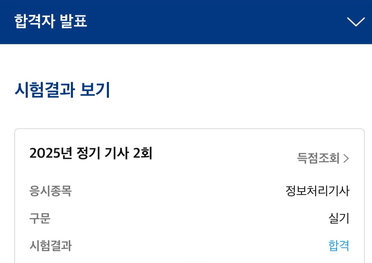 올해 정기 기사 2회 시험 "정보처리기사" 에 합격했고,