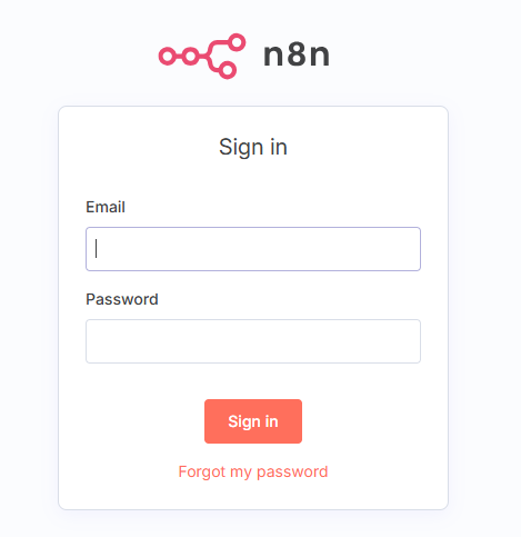 n8n 워크스페이스 로그인 페이지 가 뜨면 완벽히 구축된 상태입니다.